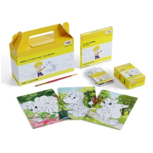 Набор принадлежностей для рисования и творчества ГАММА «Набор для детского творчества «Юный художник» – разработан для детей от 6 до 9 лет. В серию входят основные материалы для занятий творчеством в школе и дома. Набор состоит из 7 предметов, размер коробки – 23,5*8,8*22 см. В состав набора вошли: акварель 8 цветов, пластилин 16 цветов, гуашь 6 цветов, кисть пони круглая №4, 3 раскраски на картоне, формат А5.