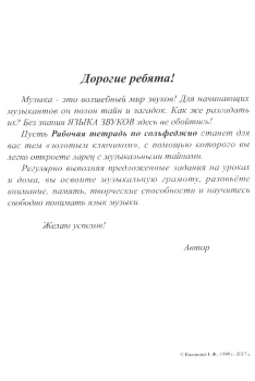 Рабочая тетрадь по сольфеджио для учащихся 1 класса ДМШ и ДШИ - экспериментальное издание, дополняющее существующие учебники разнообразными видами практических и творческих заданий. Регулярное использование данного учебного пособия как на уроках, так и при домашней подготовке к ним, позволяет добиваться высокой эффективности в освоении учебной программы и значительного повышения интереса к изучаемому предмету.