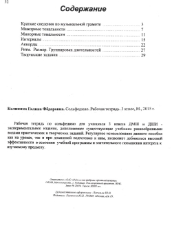 Рабочая тетрадь по сольфеджио для учащихся 3 класса ДМШ и ДШИ - экспериментальное издание, дополняющее существующие учебники разнообразными видами практических и творческих заданий. Регулярное использование данного пособия как на уроках, так и при домашней подготовке к ним, позволяет добиваться высокой эффективности в освоении учебной программы и значительного повышения интереса к изучаемому предмету.