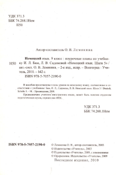 Рецензии и отзывы на книгу "Немецкий язык 9 класс. Поурочные планы к учебнику Бим"
