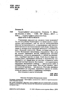 Управление реальностью: неужели такое возможно Те, кто испробовал Трансерфинг на своем опыте, с изумлением рассказывают, как их мысли непостижимым образом материализуются, а окружающая действительность буквально на глазах меняет свой облик. Например, люди по непонятным причинам начинают относиться к вам с большей симпатией. Двери, которые раньше казались безнадежно закрытыми, отворяются. При этом вы можете наблюдать весьма любопытные явления: изменение "оттенков декораций" и "круги на реальности", подобные кругам на воде. Слой вашего мира восстанавливает утраченную свежесть: к мороженому возвращается тот самый вкус из детства, а надежды снова обретают восторг юности. Но главное - это характерное ощущение внутренней свободы - привилегия жить в соответствии со своим кредо. Как это ни странно, здесь нет никакой мистики - все реально. Поэтому, проверяя прочитанное на практике, держитесь крепко на земле, чтобы не упасть в небо от удивления и восторга.
