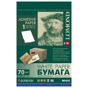 Бумага-этикетка самокл А4 210*297 белая неделенная 70мкр цена за 1 лист