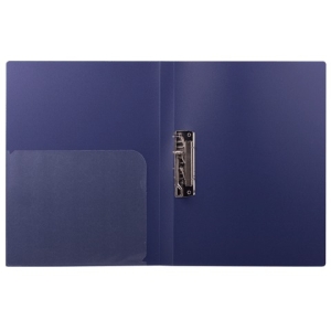 Папка с боковым зажимом Brauberg синяя с карманом Диагональ 221357