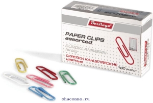 Скрепки канцелярские 28 мм 100шт цветная Berlingo