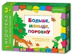 Развивающая игра для групповых и индивидуальных занятий с детьми. Цель игры – знакомство с понятиями «больше», «меньше», «поровну» по количеству (формирование элементарных математических представлений). Также процесс игры способствует развитию мышления, памяти, внимания и будет для Вашего малыша увлекательным, интересным и познавательным. Красочные четкие иллюстрации являются отличным помощником в обучении и приобретении новых знаний, делают игру веселее и ярче! Комплектация игры: 10 листов, которые содержат 7 длинных карт, маленькие карточки 3 большие карточки с сюжетными картинками, разноцветные кружочки; инструкция к игре.