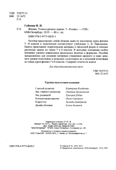 Пособие представляет собой сборник задач по школьному курсу физики 7-8 классов и тематически соответствует учебникам А. В. Перышкина. Кратко представлен теоретический материал в табличной форме и типовые расчетные задачи по темам 7 и 8 классов. В методике изложения особое внимание уделено взаимосвязи физических величин в формулах. Пособие предназначено для освоения материала учащимися среднего и ниже среднего уровня подготовки и позволяет подготовить их к итоговой аттестации по темам курса физики 7 и 8 классов. Содержит ответы на задачи.