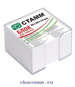 Блок для записей 8*8*5 белый в пластиковой прозрачной подставке