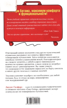 Книга раскрывает секреты быстрого и эффективного планирования путешествия, объясняет современные техники упаковывания вещей и поможет подобрать все необходимое для любой поездки, будь-то отдых на море, деловая командировка или экскурсионный тур — минимум багажа, максимум комфорта и функциональности.