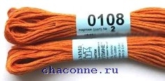 Нитки для вышивания. Мулине х/б 24x8м 0108 Ярко-оранжевый