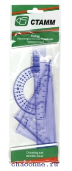 Набор средний геометрический (треугольник 2шт, линейка 20 см, транспортир) прозрачный