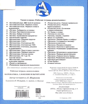 Рабочая тетрадь "Математика. Сложение и вычитание", предназначена для детей дошкольного возраста.