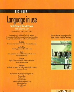 Each of the four levels comprises about 80 hours of class work, with additional time for the self-study work. The Teacher's Book contains all the pages from the Classroom Book, with interleaved teaching notes including optional activities to cater for different abilities. There is a video to accompany the Beginner, Pre-intermediate and Intermediate levels. Each video contains eight stimulating and entertaining short programmes, as well as a booklet of photocopiable activities. Free test material is available in booklet and web format for Beginner and Pre-intermediate levels. Visit www.cambridge.org/elt/liu or contact your local Cambridge University Press representative.