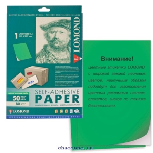Бумага-этикетка самокл неон А4 210х297 мм зеленая