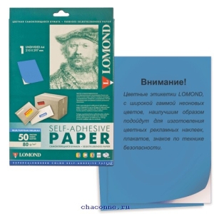 Бумага-этикетка самокл А4 210х297 мм голубая 2140005