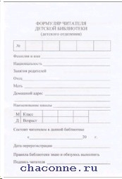 Формуляр читателя детской библиотеки