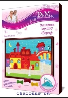 В набор входит: пластмассовая канва, рамка для картины, пряжа, иголка, схема вышивки.