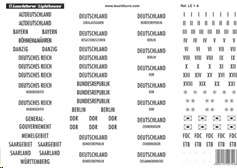 Лист с набором наклеек LE 1A с названиями Германских провинций, ФРГ и прочих Формат 210х297.