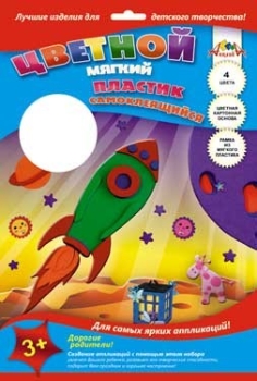 Набор цв пластика А4 4 цв Ракета цветной мягкий самоклеящийся С1908-02