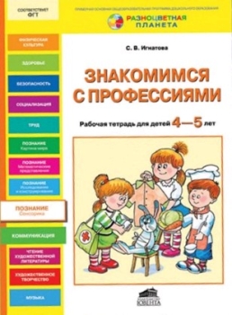 Рабочая тетрадь "Знакомимся с профессиями" предназначена для работы с детьми 4-5 лет в образовательных областях "Познание" ("Сенсорика") и "Труд" и входит в учебно-методический комплект программы "Разноцветная планета".