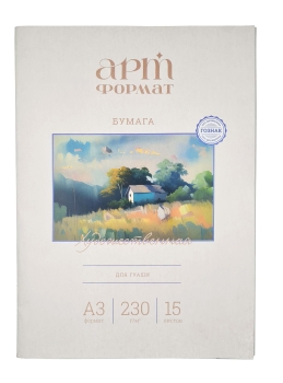 Бумага для гуаши предназначена для гуашевой живописи. Поверхность бумаги хорошо впитывает воду и слегка шероховатая, что позволяет краске лучше сцепляться с поверхностью, ровнее ложиться. После высыхания краски не будут осыпаться. Плотность бумаги – 200 г/м2. Формат - А3. В папке – 15 листов.