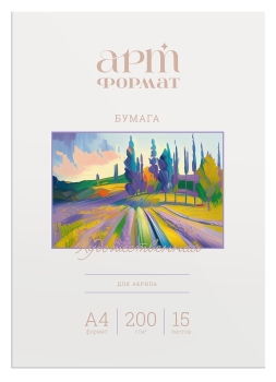 Бумага для акрила предназначена для живописи акриловыми красками. Поверхность бумаги гладкая, что позволяет краске ровнее ложиться. При нанесении красок бумага не деформируется, так как краска не проникает глубоко в бумажную массу, оставаясь на поверхности интенсивным ярким слоем. Плотность бумаги – 200 г/м2. Формат - А4. В папке – 15 листов.