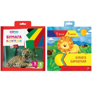 Бархатная бумага 5 цв 5л 200*200 в папке 182120, 1812