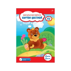 Набор цв картона А3 8л 8 цв мелованный картон в папке
