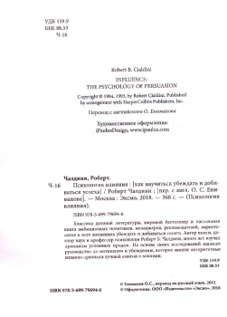 Классика деловой литературы, мировой бестселлер и настольная книга амбициозных политиков, менеджеров, рекламодателей, маркетологов и всех желающих убеждать и добиваться своего. Автор книги, доктор наук и профессор психологии Роберт Б. Чалдини, много лет изучал принципы успешных продаж. На основе своих исследований написал руководство по мотивации и убеждению, которое многие авторитетные издания признали лучшей книгой о влиянии.