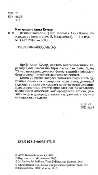 Профессор Анил Кумар, являясь благословенным переводчиком Бхагавана Шри Сатья Саи Бабы более 23 лет, неустанно делится божественной любовью и божественной мудростью с человечеством. Книга «Вечный вопрос» помогает разрешить духовные сомнения в вопросах медитации, духовной садханы, а также раскрывает понятие освобождения. Представленные ответы проводят нас по основным жизненным аспектам: как преодолеть эгоизм, усилить веру и доверие, а также как улучшить взаимоотношения с людьми.