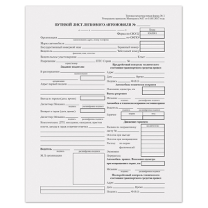 Бланк "Путевой лист легкового автомобиля" соответствует установленному образцу.