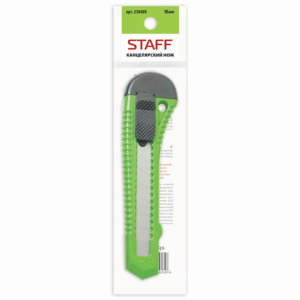 Канцелярский нож с фиксатором STAFF - инструмент, который поможет в резке бумаги, тонких пластиков, картона и прочих материалов. Изделие хорошо проявляет себя как при периодической эксплуатации, так и в ходе продолжительной работы.
