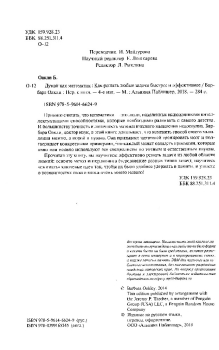 Принято считать, что математики — это люди, наделенные недюжинными интеллектуальными способностями, которые необходимо развивать с самого детства. И большинству точность и логичность математического мышления недоступна. Барбара Оакли, доктор наук, в этой книге доказывает, что изменить способ своего мышления можно, а порой и нужно. Она призывает читателей тренировать мозг и подтверждает конкретными примерами, что каждый может овладеть приемами, которые явно или неявно используют все специалисты по точным и естественным наукам.