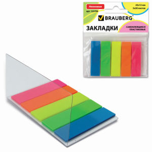 Блок закладок самокл Brauberg неон 45*12 мм 5 цв*20л в пласт книжке европодвес