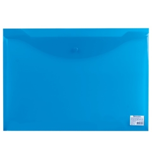 Папка конверт с кнопкой А3 BRAUBERG синяя прозрачная