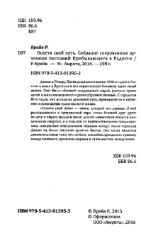 Джоан и Ричард Брейк родились в конце 1930-х годов в Англии и жили в Бристоле и его окрестностях большую часть своей жизни. Они были обычной супружеской парой, растили троих детей и жили насыщенной и разнообразной жизнью. С середины 80-х годов, они встали на духовный путь, приведший их к изучению и пониманию единства всей жизни. "Освети свой путь" - книга, которой нет равных. В ней рассказывается о супружеской паре, столь близкой друг к другу по духу и образу мысли в своей долгой совместной жизни и разлученной смертью, и о том, как их взаимоотношения продолжились совершенно невероятным образом вскоре после перехода Джоан на более высокий уровень бытия. Эта книга является доказательством того, что любовь способна преодолеть границу между земным и духовным мирами и стать мостом между ними.