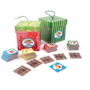 Самая необычная игра на память! В настольной игре Фруктовый Микс вы ищете не совпадающие картинки, а полностью различные! Картинки различаются по трём признакам, так что на помощь придёт логическое мышление. Запомнить карточки целиком? Или часть признаков? А может, лучше запомнить, каких признаков нет? Зарядите мозг энергией с этой яркой и умной игрой!
