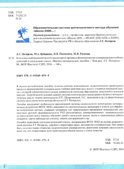 В научно-методическом пособии описана система комплексного педагогического мониторинга процесса формирования универсальных учебных действий всех видов у учащихся начальной школы с позиций преемственности между дошкольной ступенью образования, начальной и основной школой. Теоретической основой данной системы комплексного мониторинга является методологическая версия теории деятельности (Г.П. Щедровицкий, О.С. Анисимов и др.) и дидактическая система деятельностного метода обучения (Л.Г. Петерсон). Пособие раскрывает особенности предлагаемой системы комплексного мониторинга метапредметных результатов ФГОС НОО, описывает ее диагностические процедуры и ключи для обработки полученных данных, содержит материалы для практического проведения комплексной диагностики уровней сформированности УУД (регулятивных, коммуникативных, познавательных) на протяжении всего периода обучения детей в начальной школе: тесты и практические работы учащихся, карты наблюдений учителя, анкеты для родителей и пр.