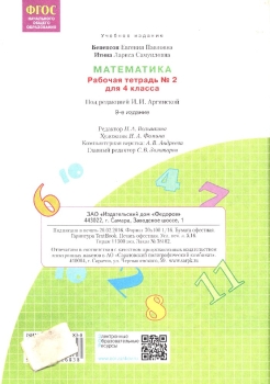 Математика 4 класс. Рабочая тетрадь в 2х частях часть 2я