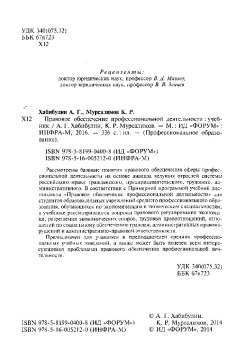 Рассмотрены базовые понятия правового обеспечения сферы профессиональной деятельности на основе анализа ведущих отраслей системы российского права: гражданского, предпринимательского, трудового, административного. В соответствии с Примерной программой учебной дисциплины "Правовое обеспечение профессиональной деятельности" для студентов образовательных учреждений среднего профессионального образования, обучающихся по экономическим и техническим специальностям, в учебнике рассматриваются вопросы правового регулирования экономики, разрешения экономических споров, трудовых правоотношений, отношений по социальному обеспечению граждан, административных правонарушений и административно-правовой ответственности. Предназначен для учащихся и преподавателей средних профессиональных учебных заведений, а также может быть полезен всем интересующимся проблемами правового обеспечения профессиональной деятельности.