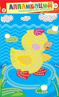 Мозаика из квадратиков, изготовленных из мягкого пластика ЭВА, на который с одной стороны наклеяна цветная пленка, а с другой - самоклеящаяся. В набор входят: картинка-основа для аппликации, квадратики из мягкого пластика на самоклеящейся основе 8 цветов, декоративные элементы (стразы, глазки и др.)