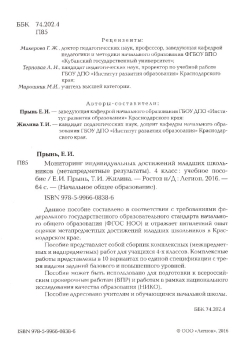 Данное пособие составлено в соответствии с требованиями федерального государственного образовательного стандарта начального общего образования (ФГОС НОО) и отражает пятилетний опыт оценки метапредметных достижений младших школьников в Краснодарском крае. Пособие представляет собой сборник комплексных (межпредметных и надпредметных) работ для учащихся 4-х классов. Комплексные работы представлены в 10 вариантах по единой спецификации с тремя видами заданий базового и повышенного уровней. Пособие может быть использовано для подготовки к всероссийским проверочным работам (ВПР) и работам в рамках национального исследования качества образования (НИКО). Пособие адресовано учителям и обучающимся начальной школы.