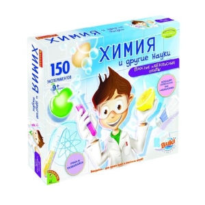 Добро пожаловать в Лабораторию химии! Благодаря этому набору можно изучить привычные события и стать ближе к миру химии с помощью 151-го захватывающего эксперимента. Эксперименты: кислоты и щелочи, что такое кислотный дождь, больше тестов на кислоты и щелочи, составляем таблицу кислот и щелочей, заставь яичную скорлупу исчезнуть, можешь ли ты почистить яйцо, не прикасаясь, что получится, если смешать кислоту и щелочь, трюк с воздушным шариком, чистим старые монеты, чистим монеты кока-колой, делаем скоростную лодку, делаем вулкан, делаем газовую пушку, делаем цветной гейзер, химическая реакция вырабатывает тепло, делаем кристаллы из известняка, сталактиты из соли, делаем кристаллы из соли, куда исчезает сахар, наблюдаем движение молекул, делаем кристальные чернила, делаем невидимые чернила, впитывание и красители, эксперимент с растворами, легко смешать - легко разделить. Для детей от 9 лет.