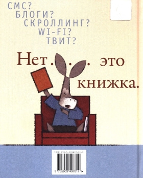 Мы все больше зависим от различных приспособлений и гаджетов. Вот, например, этот текст читатель видит на экране своего компьютера или даже телефона. При этом легко прокрутить страницу вниз, чтобы рассмотреть иллюстрации, движением пальцев увеличить или уменьшить кусок страницы и даже поставить "лайк". Детям не нужно объяснять, как запустить видео на "Ютубе" или сделать фотографию айфоном. Мы читаем в метро электронные книги, слушаем аудиокниги в машине и уже привыкаем к спецэффектам в айпадах. Может, вообще, мы все скоро забудем, что такое бумажные книги? Детей будут специально водить в библиотеки, как в музеи, чтобы показать им чудо чудное - толстые и тонкие книжки в твердом переплете или мягкой обложке, со статичными иллюстрациями, не издающими никаких звуков. Наверняка уже есть взрослые, которые почти забыли, каково это - листать страницы, улавливать еле ощутимый запах типографской краски, ощупывать фактурные элементы на обложке. Эта книжка-картинка, книжка-шутка с незамысловатым, но исчерпывающим названием создавалась для того, чтобы мы все помнили, что такое книга и для чего она нужна. Ее страницы нельзя прокрутить, ее герои размахивают мечами из слов, она не посылает твиты, и мышки у нее тоже нет. Это просто книжка. Остроумная и симпатичная. Чтобы мы не забыли, какие они - книжки.