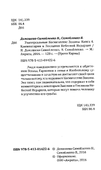 Люди каждодневно устремляются к обретению Успеха, Гармонии в семье и Изобильному существованию и зачастую не достигают своей цели только потому, что нарушают Космические Законы. Эта книга тем знаменательна, что содержит в себе комментарии к некоторым Законам и Послания Небесной Иерархии, которые могут помочь человеку в улучшении его судьбы.