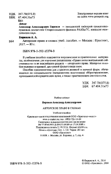 В учебном пособии содержатся теоретические и практические материалы, необходимые для изучения дисциплины «Право интеллектуальной собственности» и ее важнейшего раздела — авторского права. Материал пособия изложен в краткой, доступной форме в виде схем. Пособие предназначено для студентов дневной и заочной форм, обучающихся по специальности (направлению подготовки) «Юриспруденция», преподавателей юридических вузов, а также практикующих специалистов. С учетом новой редакции Гражданского кодекса Российской Федерации, в том числе Федеральных законов №187-ФЗ, 222-ФЗ, 35-ФЗ.
