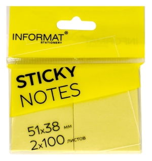 Блок для заметок самоклеящ 51х38 мм 2шт 100л желтый