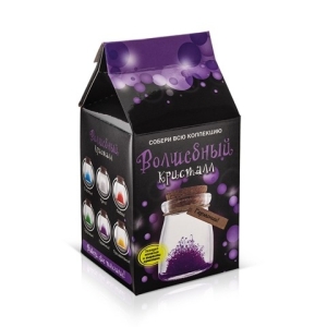 В каждом наборе: красивая баночка, в которой удобно следить за выращиванием кристаллов, волшебный кристаллический порошок, кристаллическая таблетка, палочка для перемешивания, пробка, веревочка, карточка с пожеланием и инструкция.