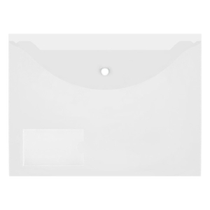 Папка конверт с кнопкой А4 150мкм с карманом для визиток прозрачная