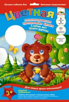 Набор цв бумаги А4 5 цв крепированная металл Мишка С1629-01