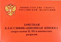 Зачетная классификационная книжка спортсменов II, III и юношеских разрядов